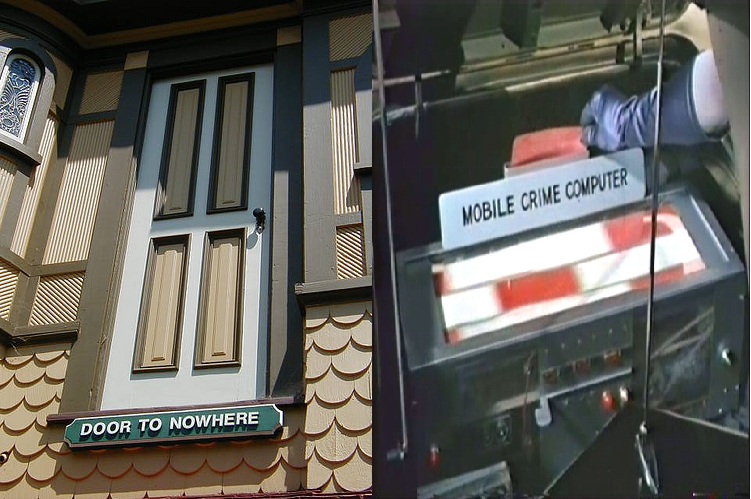 To escape the ghosts she built winding stairways that led to blank walls, doors that opened on sheer drops, rooms with ceilings only a few feet high, slanted walls, windows in the middle of rooms peering into other rooms, windows that look open onto brick walls, rooms with miniature furniture, upside down columns, trapdoors, and even rooms decorated with nothing but paintings of Richard Nixon. Though he was born in 1913 and only nine years old when construction ended, the spirits knew.