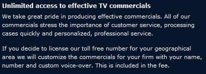 It seems that this law firm is based not around the practice of law but around the licensing out of their phone number and allegedly effective commercials.