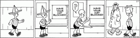 2- What the heck does “have your hat blocked” mean? Is it calling him a blockhead?