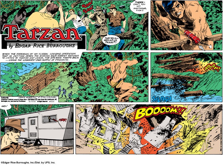 This is more like the Tarzan we all know, back in the jungle. I chose this strip because of Tarzan’s Duke’s of Hazzard-like arrow with a stick of dynamite attached.