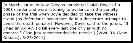 Doyle testified against the advice of his attorneys and said he had no remorse for what he did to Lee. He said he had no sympathy for her or her family. And he lashed out at the jury.