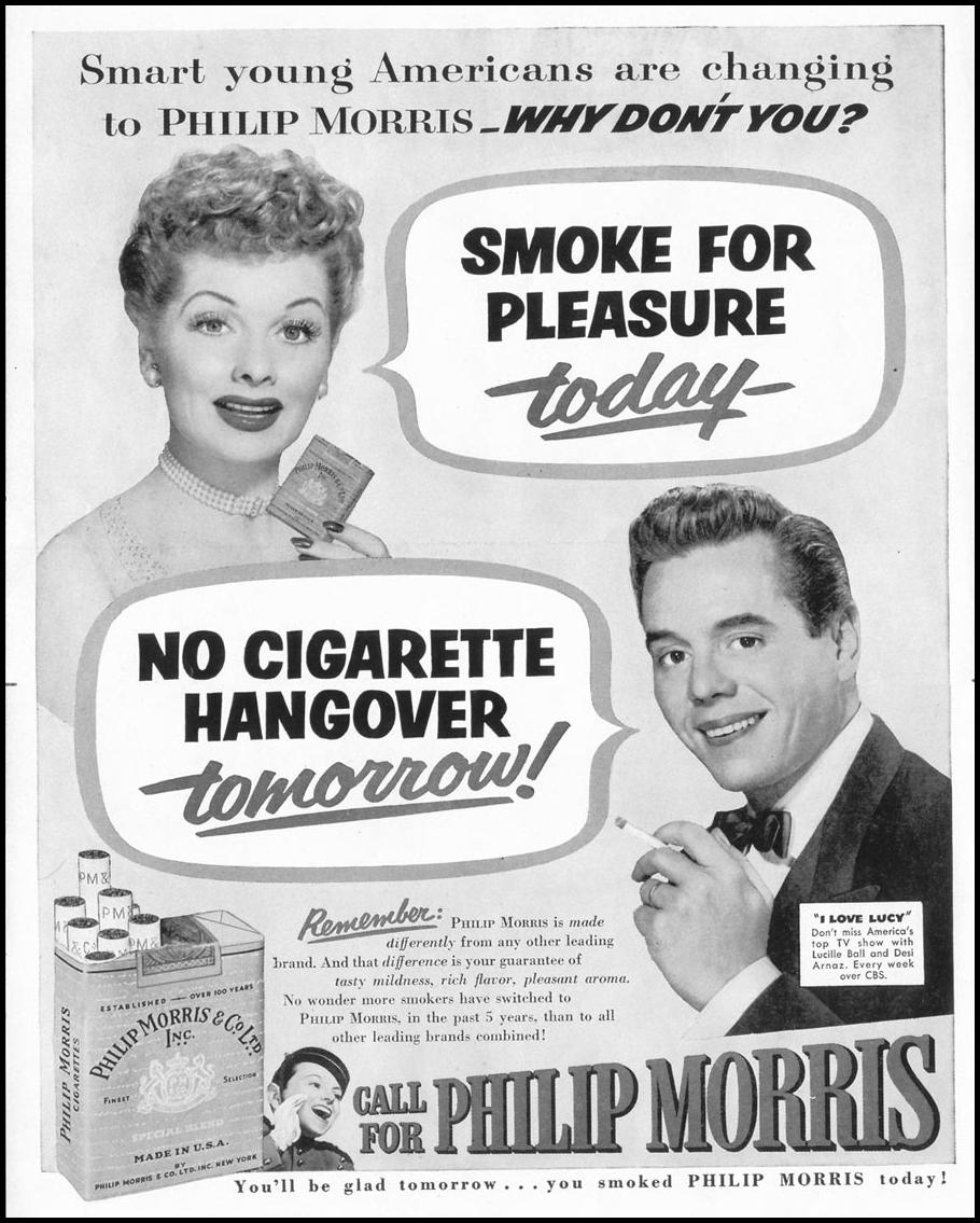If you can’t read the teeny tiny disclaimer at the bottom, it says “We do not say that smoking Luckies reduces flesh. we do say when tempted to overindulge, ‘Reach for a Lucky instead.'” No, they don’t say it, but “face the facts!” In all but words, that is what the ad is saying.
