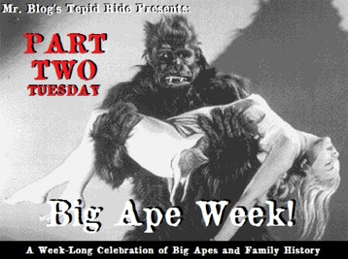 There were Big Ape comic books, Big Ape silverware sets, Big Ape costumes, dolls, toys of every type and even expensive Big Ape diamond jewelry. During this time, The Big Ape  also conquered the world of television, hosting The Big Ape Variety Hour. Although TV, still in it’s infancy, was only in a handful of homes, it seemed as though everyone tuned in at 9 pm on the DuMont Network every Thursday evening. Long before The Cosby Show, this was Must See TV.