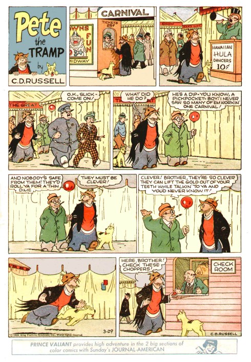 Pete the Tramp was a comic strip by Clarence D. Russell. It began in 1932 and ran for more than three decades. Howard Eugene Wilson, in the Harvard Educational Review, described the strip’s title character as “a hobo with a gentleman’s instincts.”