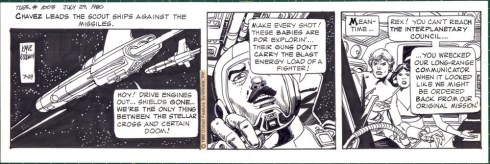It is easy to dismiss Star Hawks as a Star Wars ripoff, but what wasn’t in 1977? However, this strip has a great pedigree. It was written by Ron Goulart and then Archie Goodwin, and illustrated by Gil Kane. (And if you don’t know who any of them are, you better be off to google.) With creators like that, it is a shame that it only ran from 1977 to 1981.