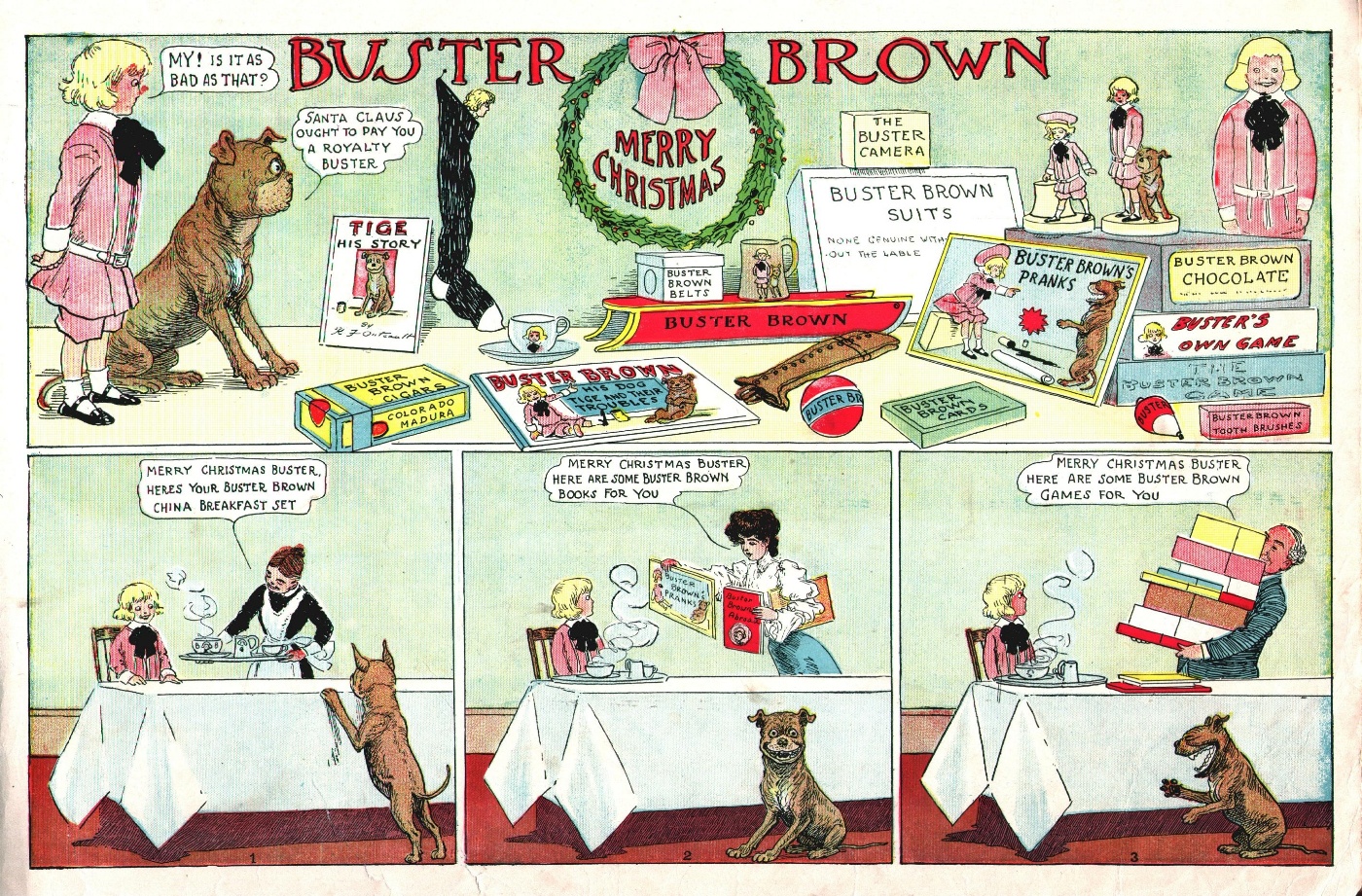 Today Buster Brown is known as the shoe company with the old-fashioned cartoon kid and his dog as their mascot. However, it is an amazing example of merchandising and product placement going back to 1904.