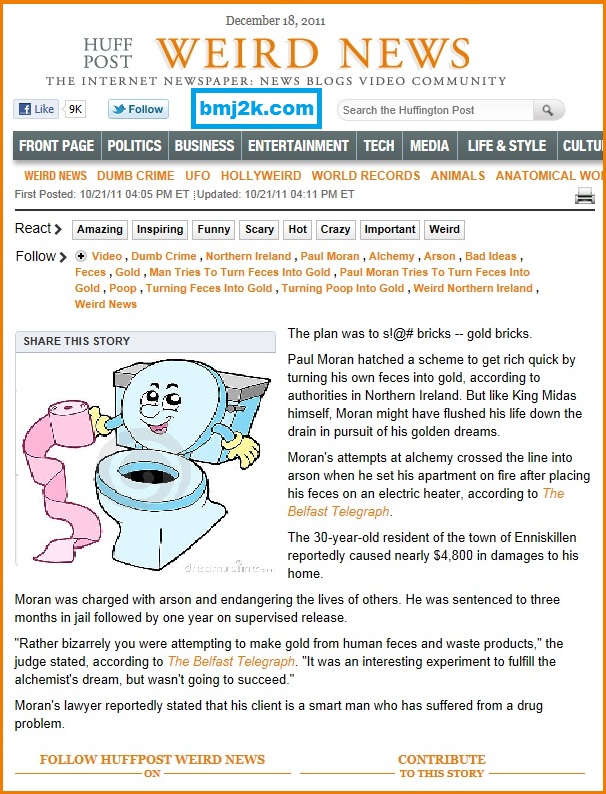 Is it just me, or does it often seem that the stupider people are, the more ingenious they try to be? Sure, this fool could have stayed home, mystified by the bright lights on his television set, but his animal cunning, and likely animal-level IQ, led him to save his poop and dry it on a space heater. Is it really so stupid? Even if he never made a single ingot of gold, he had a really cool composting program going on. Too bad he lived in a fifth floor apartment.