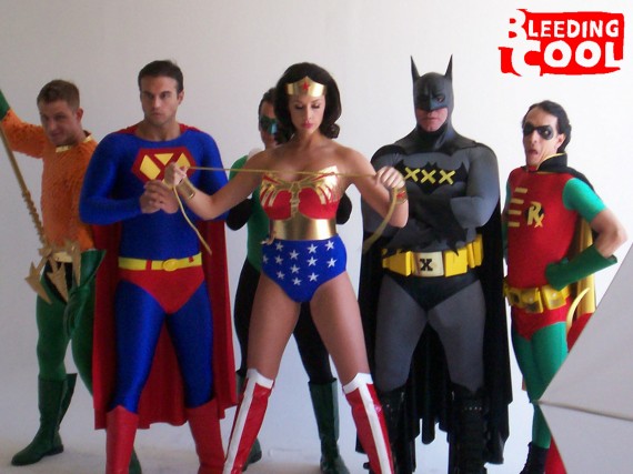 Marvel is cranking out films left and right and gearing up for The Avengers while Warner Brothers/DC can’t make a decent Superman film and Green Lantern was dead on arrival. The Batman franchise is a winner but it is also coming to an end. So in the absence of a real Justice League movie I present to you the trailer for and publicity stills from the Justice League porno movie.
