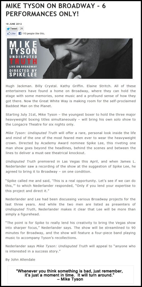 Yes, you read that right. Mike Tyson on Broadway. In a one man show!