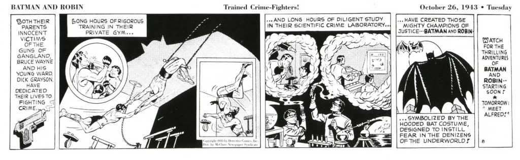 Batman has been a comic book staple but since 1943 he has been a newspaper comic strip staple as well. There have been 5 different versions of Batman comic strips running in the daily papers, including one where he costarred along with most of the Justice League on a rotating basis. The best of them is the first, the 1943-1946 run.