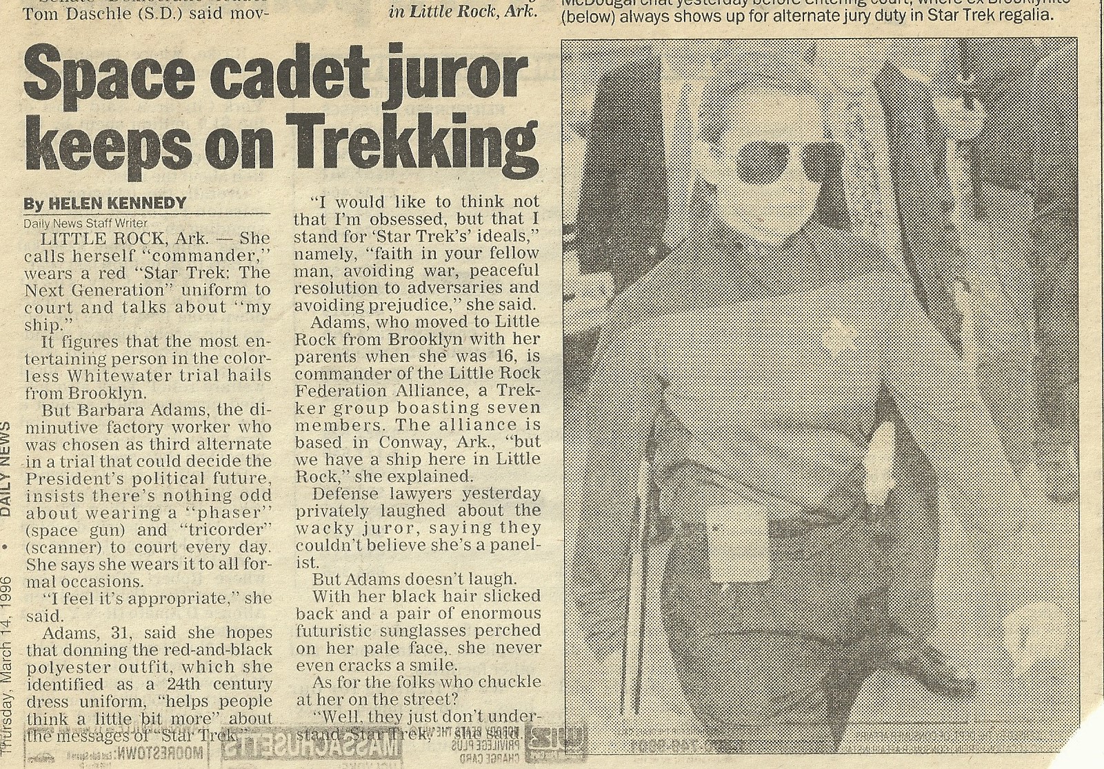 She wore a Star Trek uniform, complete with toy phaser and tricorder, to sit on a jury. “I stand for Star Trek’s ideals.”