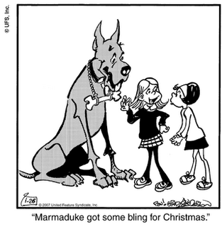 Now the kids are bringing the funny! They hung a bone around Marmaduke’s neck and called it bling! Yeah! Those white kids are so ghetto! Oh yeah!