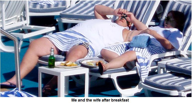 I totally understand the looks of contempt the buffet wait staff gives to passengers, we routinely leave more food on our plates than their average family in whatever impoverished country they come from sees in a week. But again – I PAID FOR IT, I’M EATING MY MONEY’S WORTH