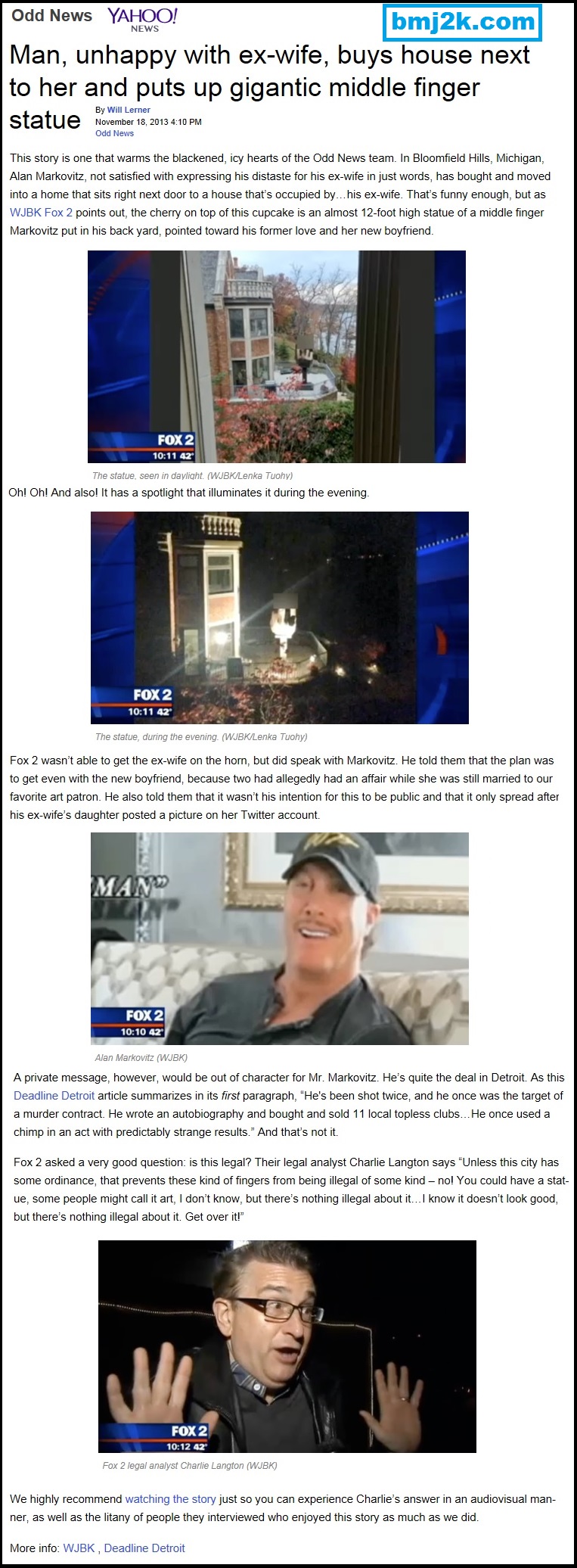 Tags: Alan Markovitz, Bloomfield Hills, bmj2k, Detroit, divorce, ex-wife, Fox 2, imponderable, Michigan, middle finger, Mr. Blog, Mr. Blog's Tepid Ride, Mr. BTR, obsene, statue