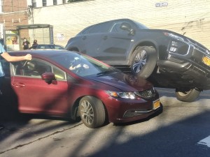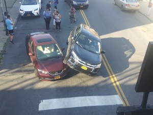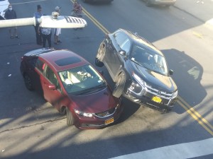 Well someone took pity on me that day. When I finally, mercifully got off the train, I saw a crowd on the elevated station looking at the street and taking pictures. It was a car accident and luckily no one got hurt. The accident itself put a smile on my face because it was so odd and unusual. I had never seen an accident just like this.