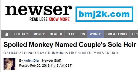 Spoiled Monkey Named Couple’s Sole Heir. Ostracized pair say Chunmun is like son they never had.