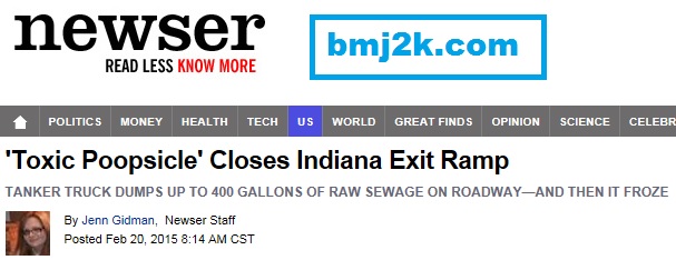 ‘Toxic Poopsicle’ Closes Indiana Exit Ramp. Tanker truck dumps up to 400 gallons of raw sewage on roadway- and then it froze.