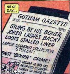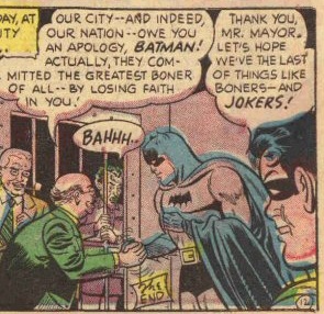 Actually I think the label was more “PED-ophile”. Commission Gordon was holding a shoe box and at the time I thought is was funny that you might see “pedophile” as meaning “foot lover,” not a good pun, but not such a bad name for a shoe company.