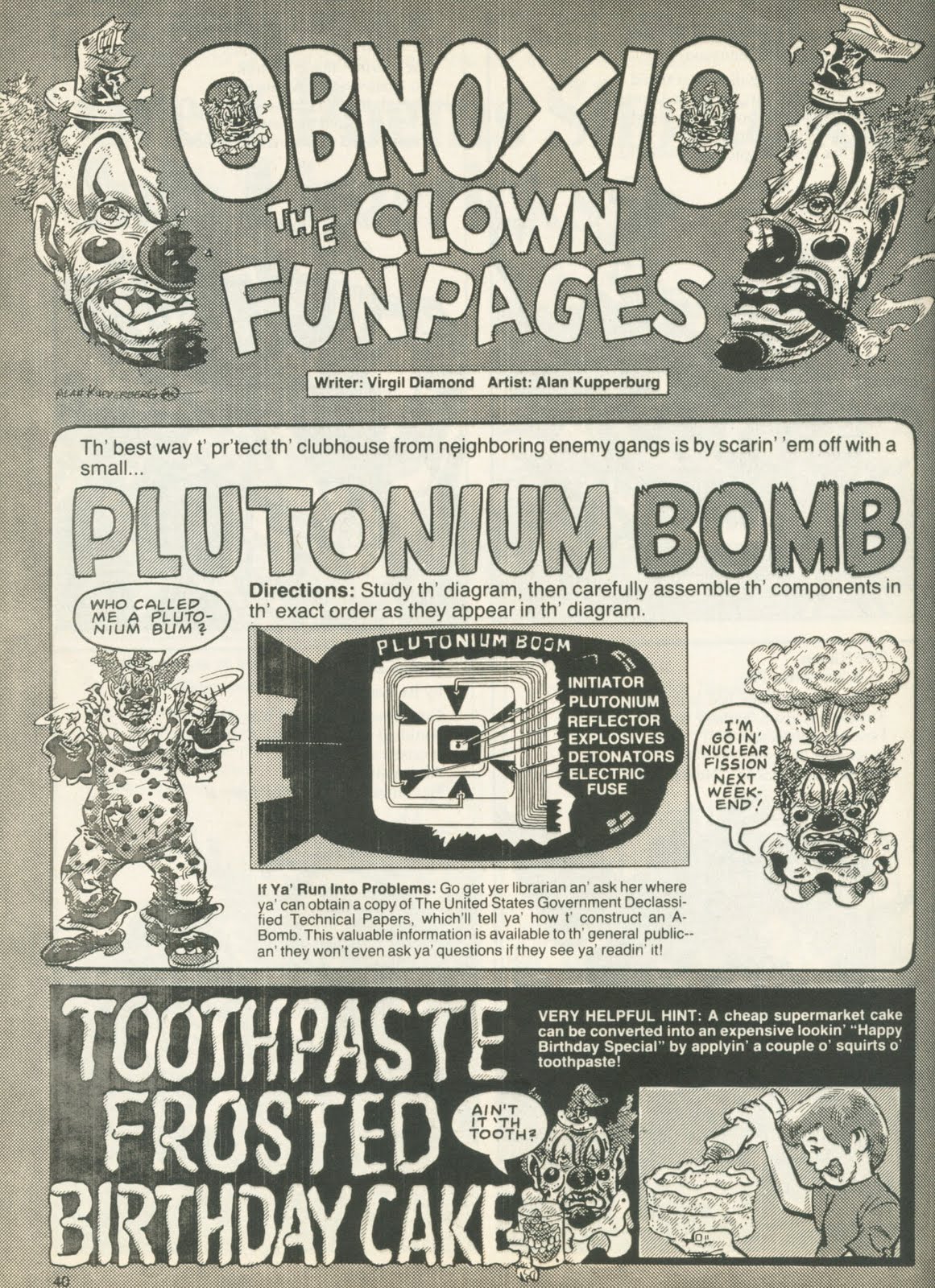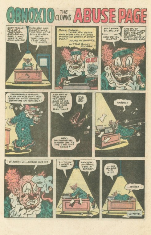 Which brings me to Obnoxio the Clown. He appeared in Crazy magazine, published by Marvel Comics Here is his official bio: