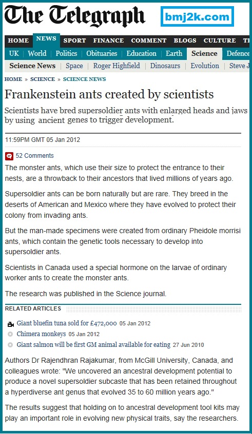Tags: anta, bmj2k, Bride of Frankenstein, Bride of the Monster, Captain America, Caribbean Crazy ants, Flowers for Algernon, Frankenstein, genes, genetics, Khan, Mant, Mr. Blog, Mr. Blog's Tepid Ride, Mr. BTR, star trek