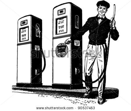 Remember back in the 1950’s when you pull your car into a gas station? Four or five guys in white uniforms would storm your car. One would fill up your tank, one would check your oil, another would put air in your tires, and one would wipe your windows whether they were clean or not. The gas would cost you 95 cents, you’d tip them a nickel, (and they’d thank you for it!) and you’d drive away, the whole thing costing you a buck.