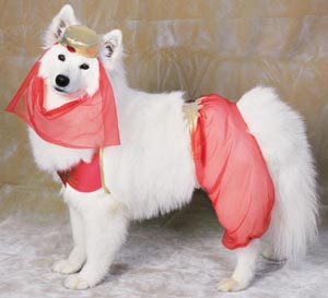 And here she is, the Harem Dog. Look at that come-hither glance, the see-through genie pants, and oh how fluffy is she! I am sorry guys, this is just wrong on so many levels.