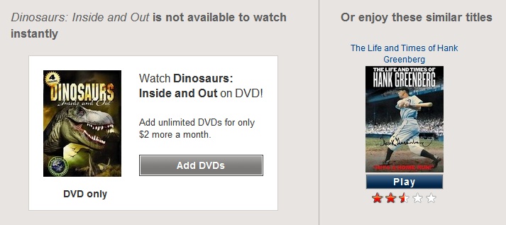 But The Life and Times of Hank Greenberg? What is the connection between dinosaurs and Hank Greenberg? Well, first, both are dead. Secondly, Hank Greenberg was Jewish and so was the Hebrewsaurus. And lastly, neither one is something that I would bother watching. I guess Netflix may be smarter than I thought to come up with all of that.