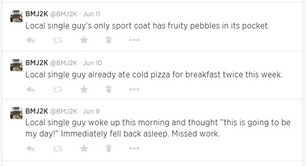 I’ve been using my Twitter account lately to post some Onion-style headlines featuring the local single guy. Let me be clear on this- This is not me and is not based on me. I am happily involved with my fantasy dwarf RPG.