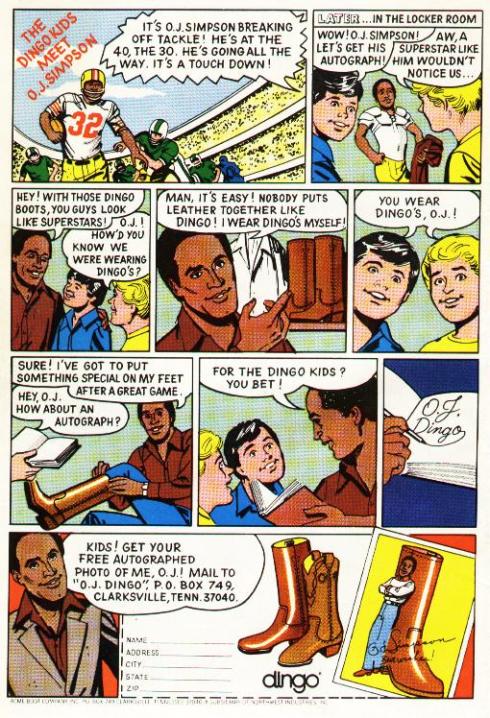 I think OJ might have partial to golf shoes. After all, he spent a lot of time on the golf course- OOPS! I mean looking for the real killer- in between trials. But he was always fond of footwear and I remember this next ad from countless comics.