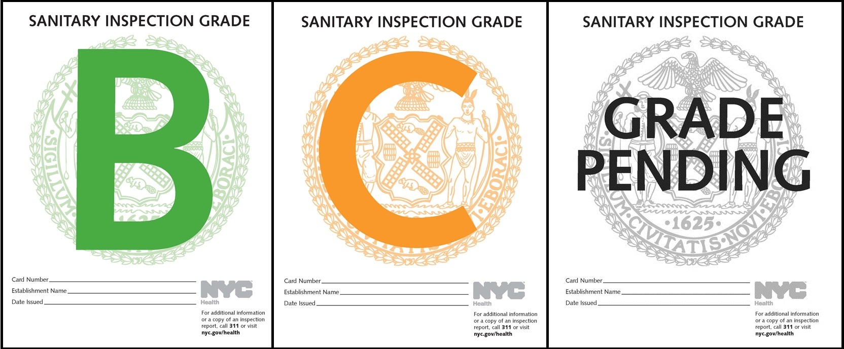 A restaurant that receives a ‘B’ or ‘C’ on its second inspection can opt to post a ‘Grade Pending’ card in the window while it waits for a hearing before an Administrative Tribunal at the Health Department.