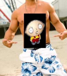 Does this guy have a head? I don’t know. In every shot he is pointing to his abs, which I must admit have a higher IQ than Snooki. Can we drop him into Afghanistan and stand him the same pose, showing the Taliban where to shoot?