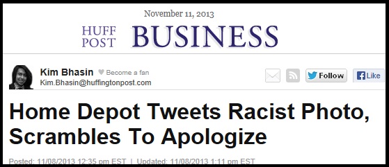 Home Depot is guilty of being insensitive, and of being oblivious to what they are posting, but I think Home Depot stops a bit short of being racist.
