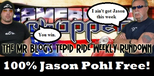 Later, Odie and Vinnie walked in with some parts for the Universal Insurance bike and Odie wasted no time ragging on the handlebars. I usually don’t criticize Vinnie, but I fully expected him to say something to Odie. He’s not a boss, he’s not an owner, but if PJD is a team and Paulie is the owner and manager, then Vinnie should be the captain of the team. He has the experience, he runs his own shop, he is the most professional, he is closest to Paulie. I’m not blaming him at all for Odie’s mouth, I’m not giving Odie a pass, but I still say Vinnie should have said something. It probably wouldn’t have done any good, but I think he should have stepped in. Just my opinion.