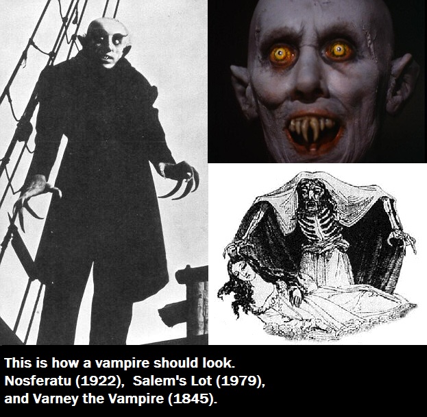 And that is a damn shame because the vampire should be the boogey man in your closet who comes out not to whisk you into a fantasy world of delight but to rip your throat open and gorge himself on your blood as it sprays gristly crimson ichor across his face. And that face shouldn’t inspire love or lust, the vampire’s face should inspire extreme fear, panic, and revulsion, but most of all, it should be the last thing you see before you pass out or die.